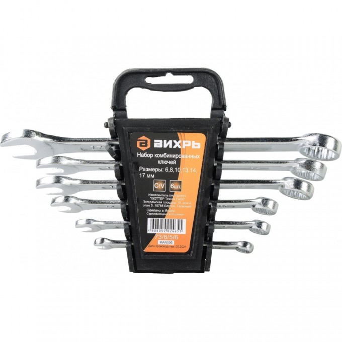 Набор комбинированных ключей ВИХРЬ 6 шт 73/6/5/6