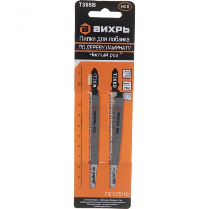 Пилки для лобзика Т308В Вихрь 73/10/5/10 используются с электролобзиками для выполнения чистого пропила различных пород дерева и ламината, толщиной от 5 до 50 мм.