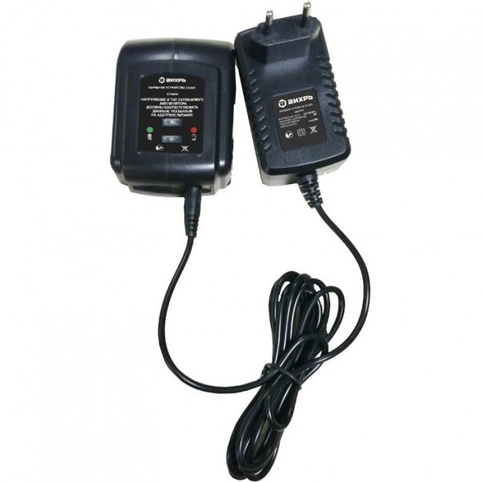 Данное зарядное устройство используется для зарядки съемных аккумуляторов шуруповертов моделей ДА-24Л-2К и ДА-24Л-2К-У. В комплекте идет адаптер с выходным напряжением 24В и само зарядное устройство для аккумулятора. Устройство питается от обычной розетки 220В.